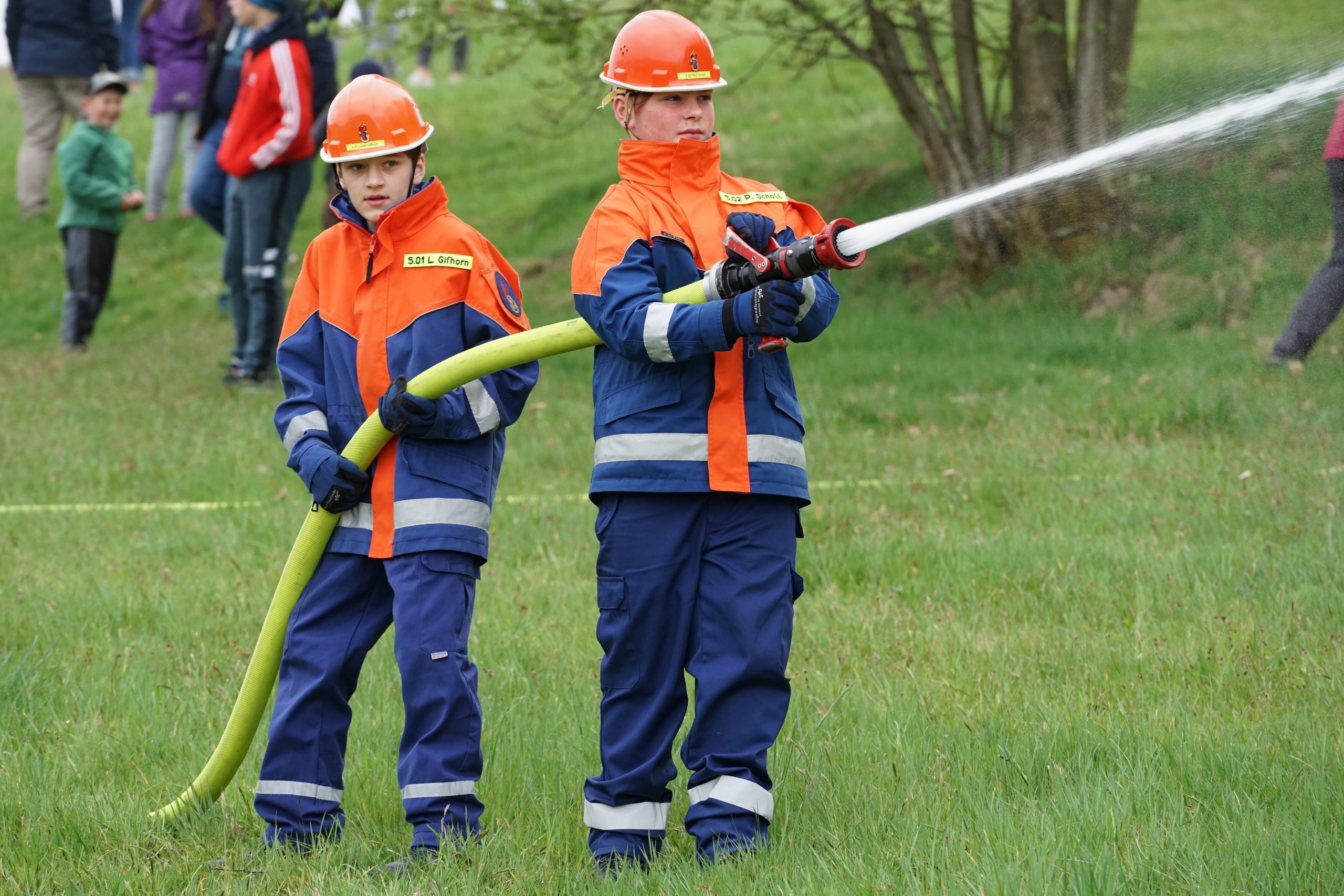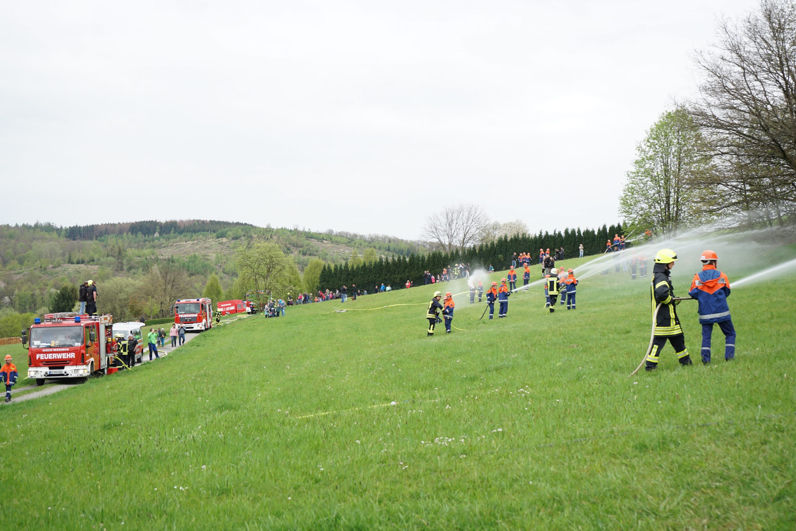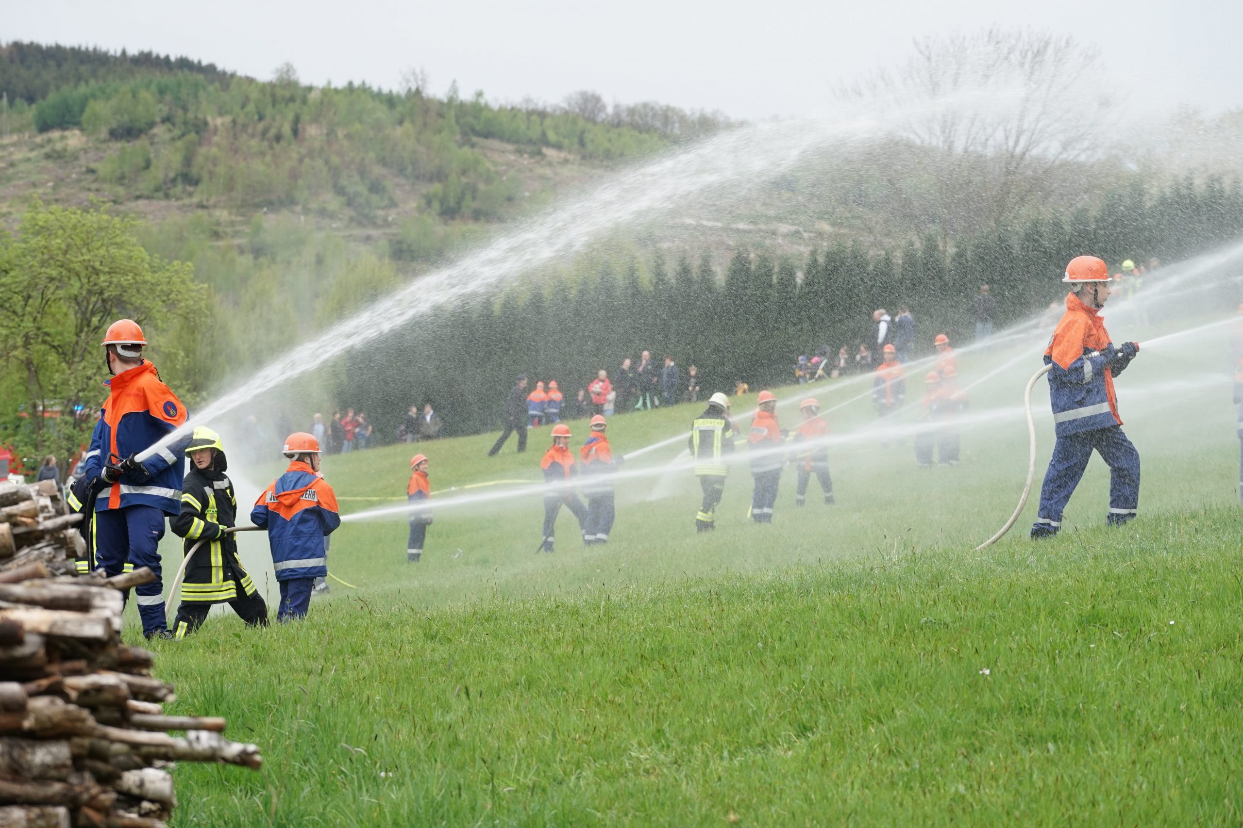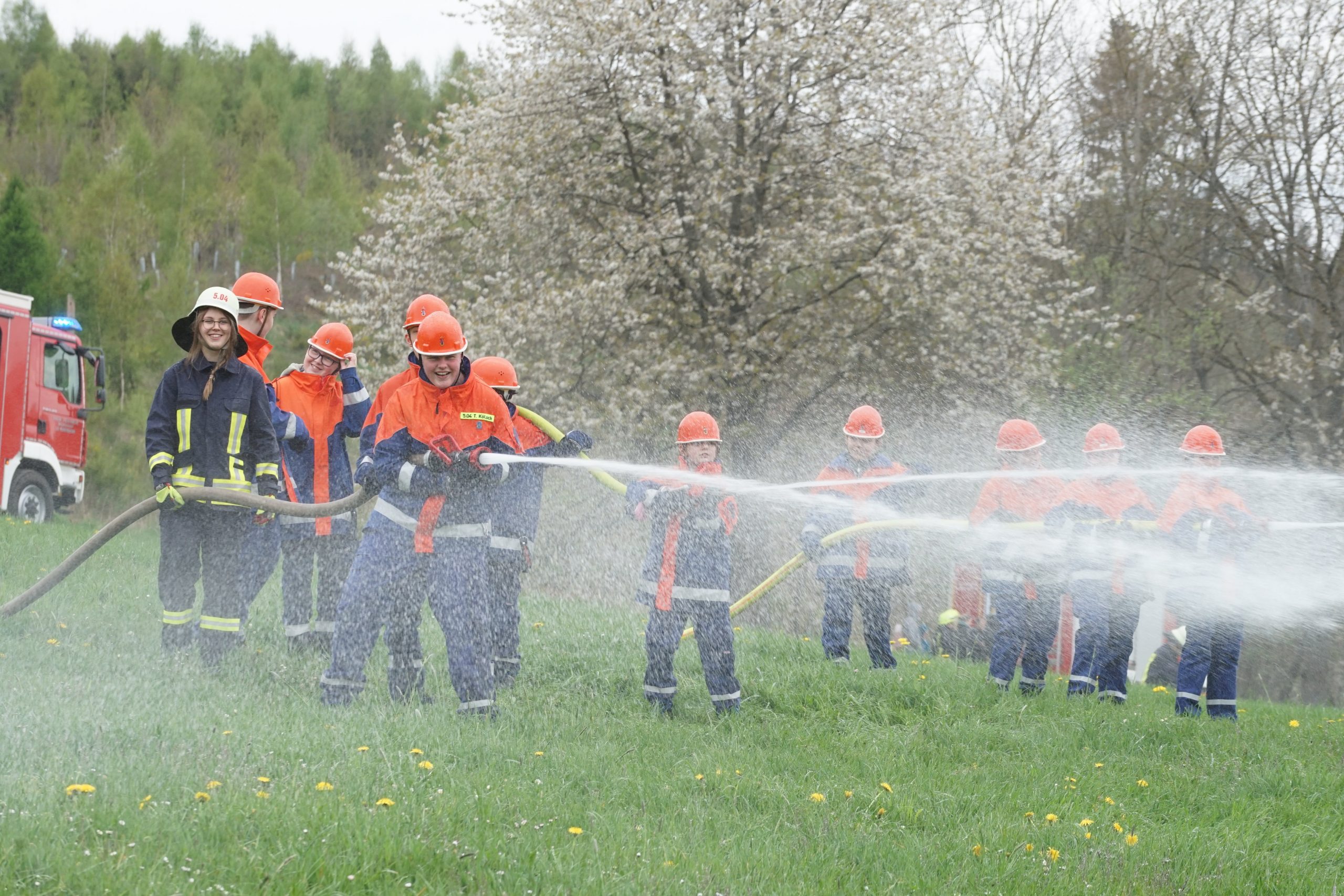 Mit Blaulicht und Sirenengeheul rückten die Nachwuchsfeuerwehrleute am Einsatzort oberhalb des Friedhofes an. Die erlernten Schritte zur Brandbekämpfung wurden routiniert abgearbeitet. Es ging an die Umsetzung der einstudierten Abläufe – jeder hatte seine Aufgabe. Schläuche wurden an der fiktiven Einsatzstelle ausgerollt und miteinander verbunden, bis es dann „Wasser marsch!“ hieß. Man sah den jungen Blauröcken den Spaß an ihrem Ehrenamt an. Mit großem Eifer waren sie bei der Sache. Vor den Augen von Familie, Freunden und weiteren Interessierten konnte das Übungsszenario nach einiger Zeit erfolgreich beendet werden. „Ich bin sehr zufrieden mit der Leistung unseres Nachwuchses. Die Übung ist wirklich prima abgelaufen“, so Gemeindejugendfeuerwehrwartin Martina Zimmermann auf SZ-Nachfrage. In das gleiche Horn stieß auch Gemeindebrandinspektor Christian Rogalski: „Ich bin stolz auf die jungen Kameradinnen und Kameraden, die wirklich sehr engagiert bei der Sache waren.“