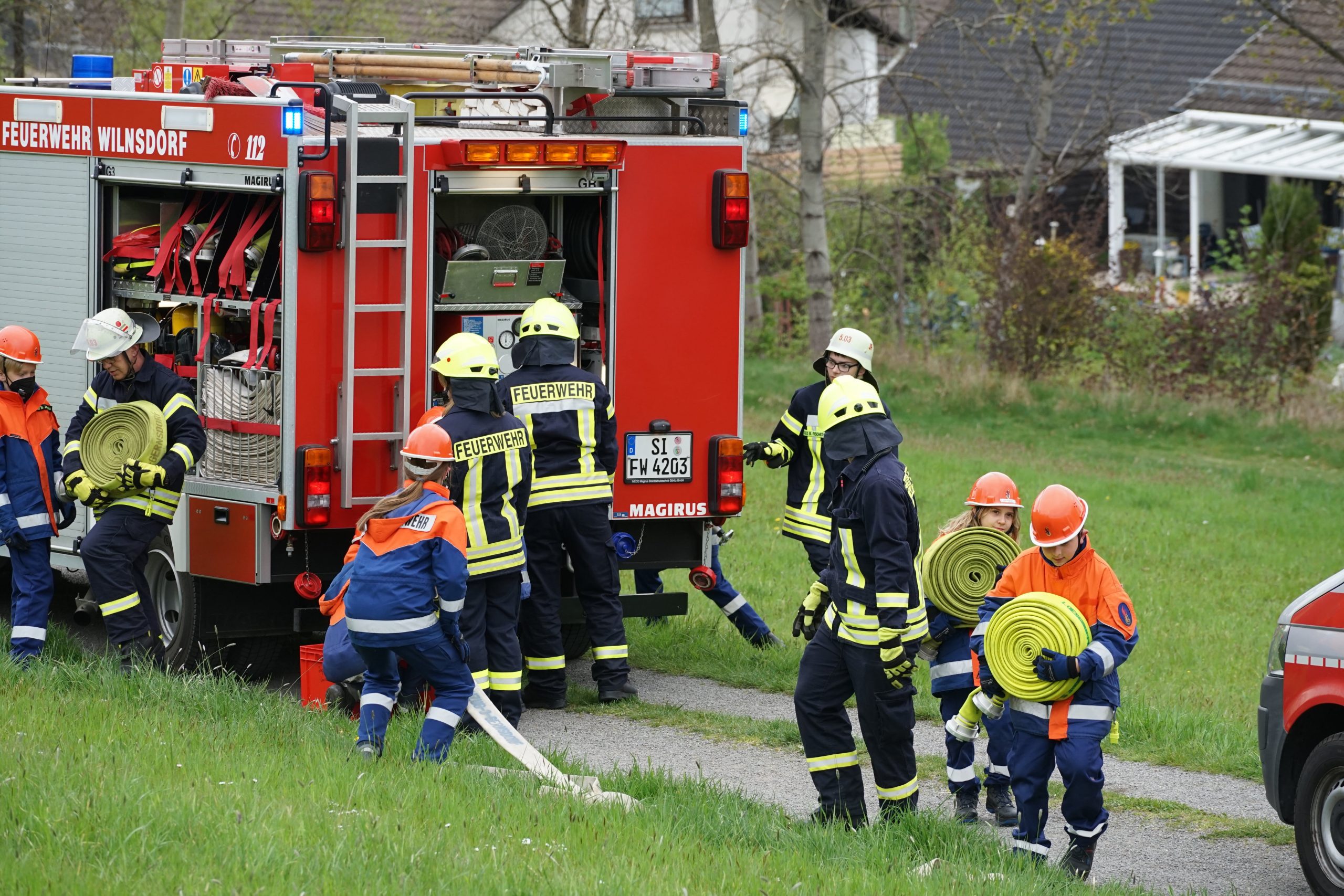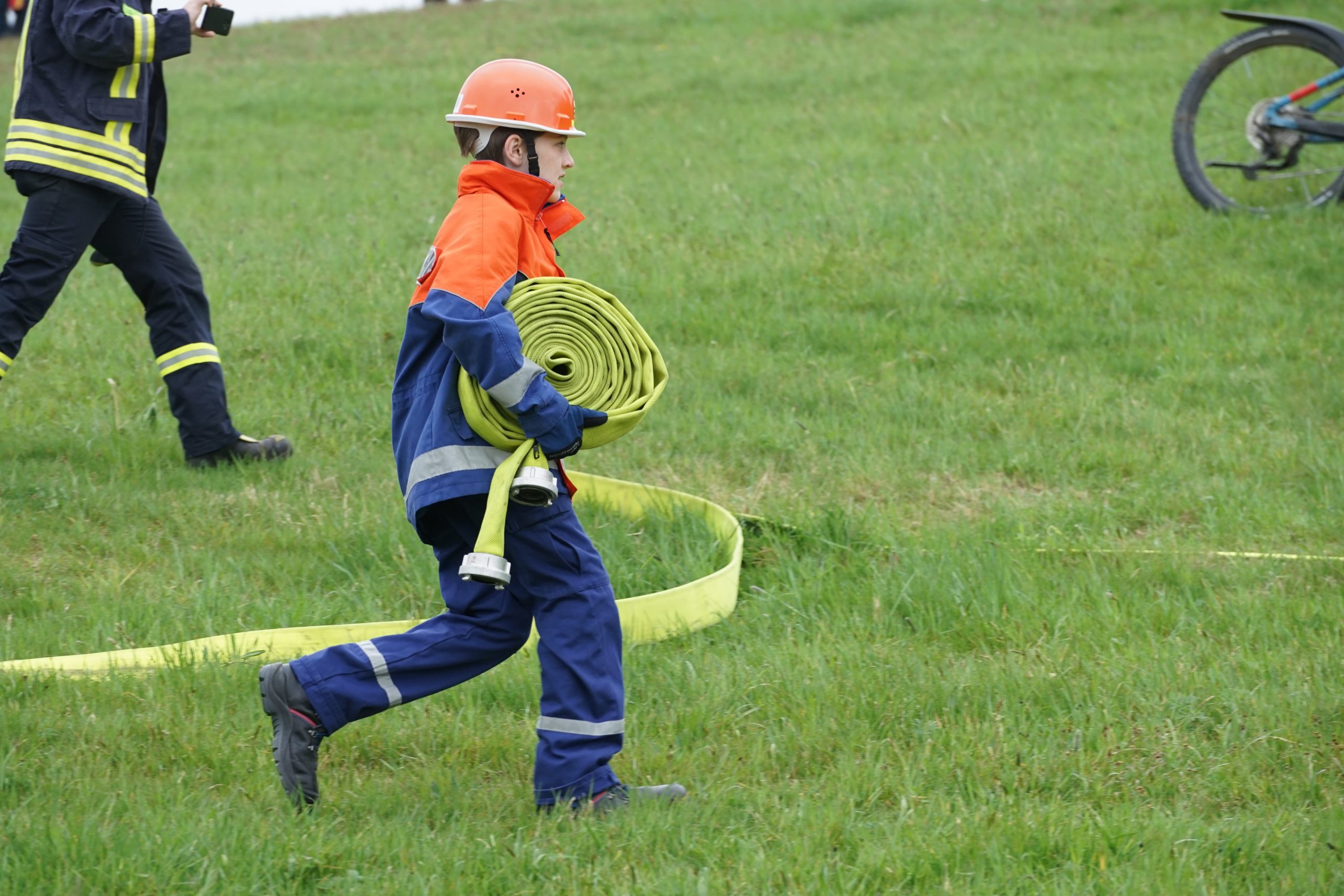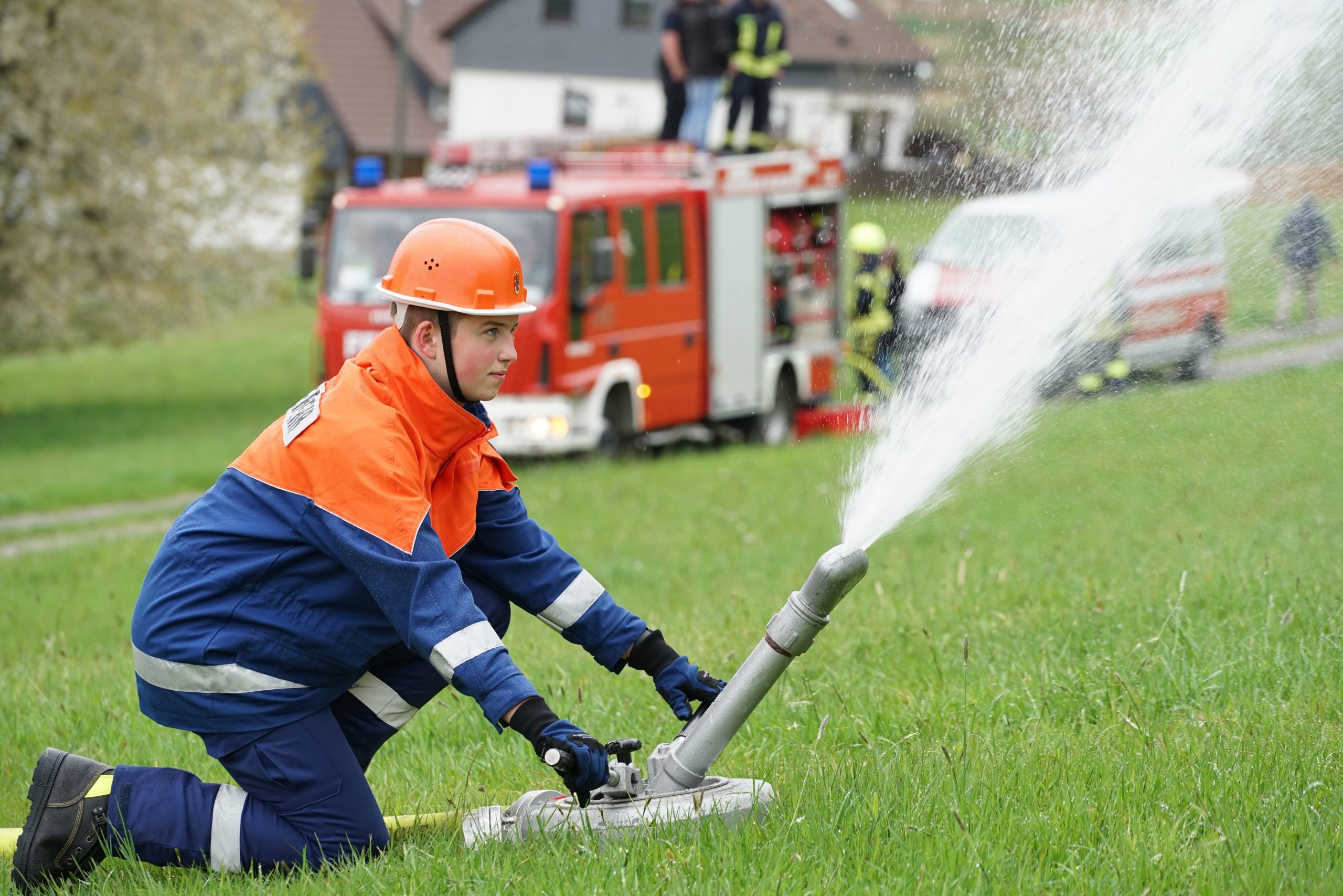 „Ich finde es echt klasse, dass die Jugendfeuerwehr unserer Gemeinde trotz Corona ihre Mitgliederzahlen steigern konnte. In anderen Städten und Gemeinden sieht es da leider nicht so gut aus“, erklärte Bürgermeister Gieseler an die Jugendfeuerwehr gerichtet. Dann genug der Worte. Die Übung, auf die alle hingefiebert hatten, nahm ihren Lauf. Als Szenario wurde folgende Situation angenommen: Ein Spaziergänger hat eine Zigarettenpause auf einer Bank gemacht und seine noch glimmende Kippe in eine Wiese geworfen. Der trockene Boden und leichter Wind haben im weiteren Verlauf einen Flächenbrand verursacht, der sich immer weiter ausbreitet.