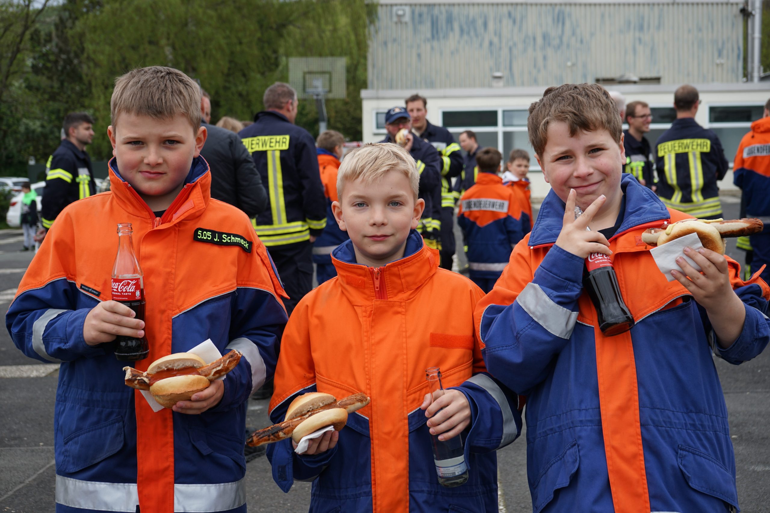 Nach Abschluss der erfolgreich absolvierten Übung trafen sich die Jugendfeuerwehren noch zu einem wohlverdienten Imbiss auf dem Schulhof der Realschule.