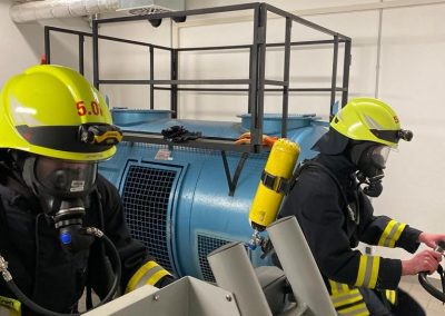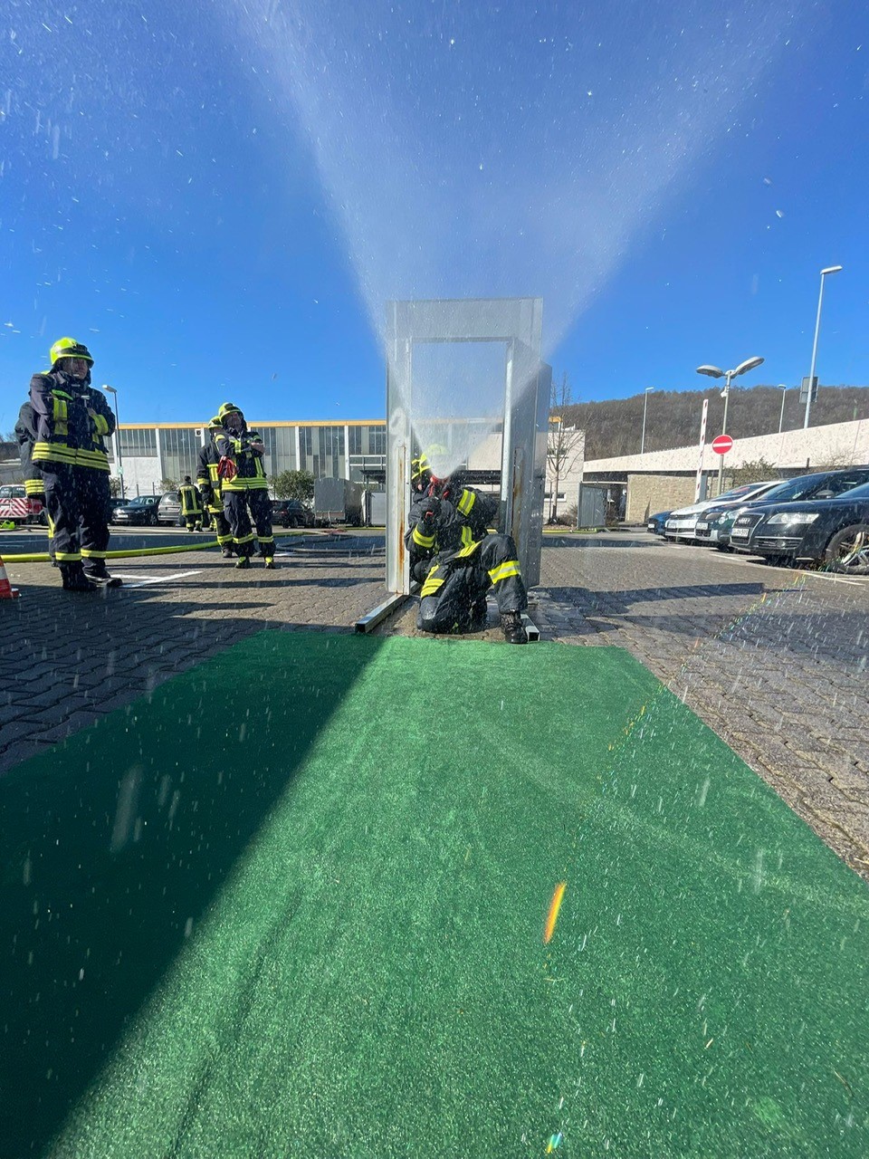 Zum Abschluss des Lehrgangs besuchte der Lehrgang die Brandsimulationsanlage der Hauptwache in Siegen und konnte hier noch einmal das Erlernte praktisch anwenden.