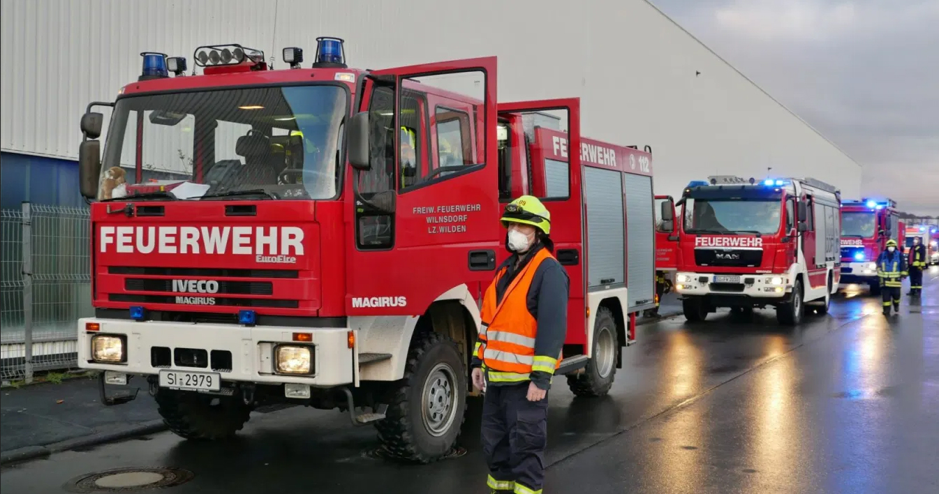 Ein Defekt an einer Kühlung hat am Montagnachmittag (7. Dezember 2020) für einen Großeinsatz der Feuerwehr in einer Halle auf dem Gelände der Firma Hillebrand an der Essener Straße im Wilnsdorfer Industriegebiet gesorgt.