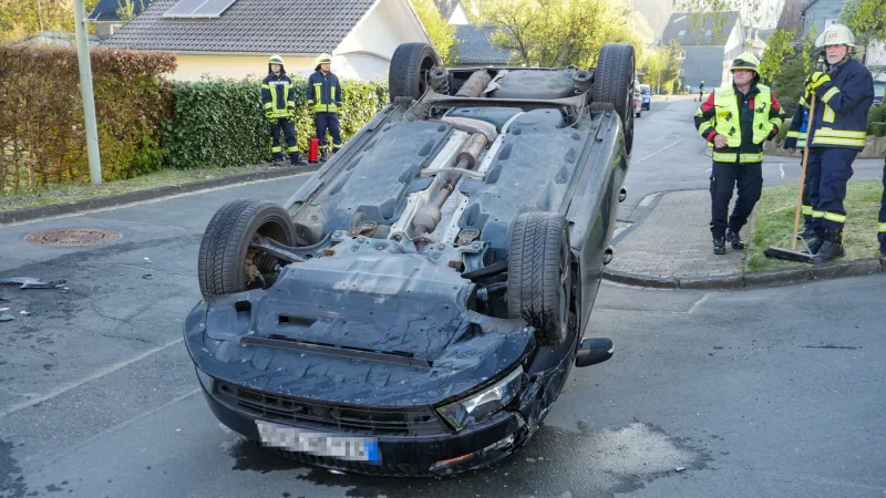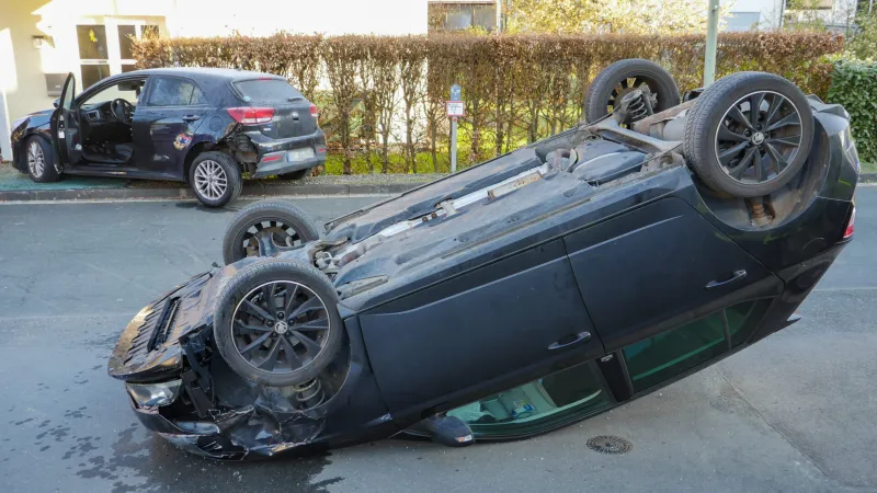 Durch die Wucht des Zusammenstoßes wurde das geparkte Auto in eine angrenzende Hecke geschoben. Das Auto der Unfallverursacherin überschlug sich im weiteren Verlauf und kam auf dem Dach liegend zum Stillstand. Die Fahrerin konnte sich selbst aus dem Wagen befreien.