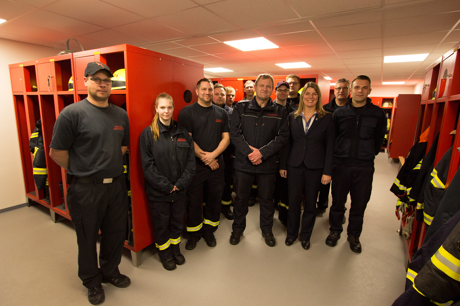 Gemeinsam mit der Feuerwehrleitung hatte Christa Schuppler daraufhin ein Konzept erarbeitet, wie die Raumprobleme zügig und zugleich effizient gelöst werden können. Dazu besuchte sie mit Christian Rogalski, dem Leiter der Freiwilligen Feuerwehr, alle elf Löscheinheiten. Aus den Gesprächen konnten stets konstruktive Vorschläge und das Angebot mitgenommen werden, tatkräftig mit anzupacken, so die Bürgermeisterin. Nun zieht Schuppler positive Zwischenbilanz: „An manchen Standorten werden wir schon mit dem Umbau vorhandener Räume Abhilfe schaffen können, wie etwa in Niederdielfen erfolgreich geschehen“. In dem Gebäude entstanden für die Feuerwehrfrauen und -männer separate Sanitär- und Umkleideräume inklusive neuer Abluftanlage, außerdem wurde die als „schwarz-weiß-Prinzip“ bezeichnete Trennung von verschmutzter Schutz- und privater Kleidung möglich gemacht. Im Obergeschoss wurde ein neuer, zweiter Rettungsweg für den Schulungsraum geschaffen.