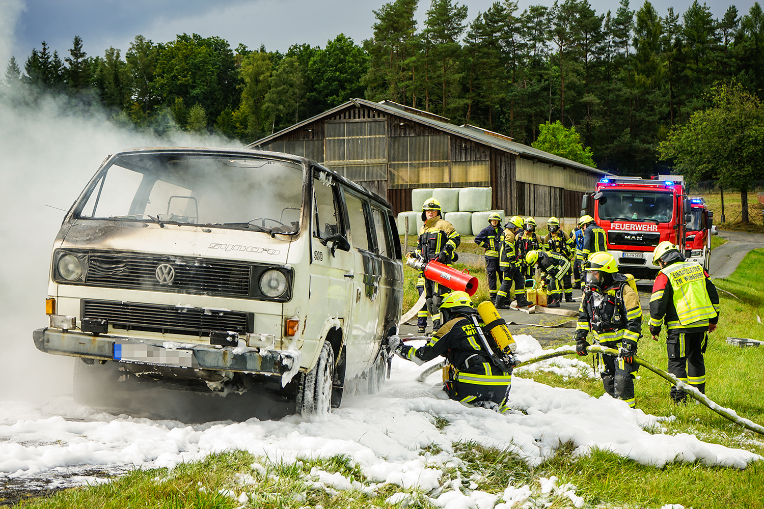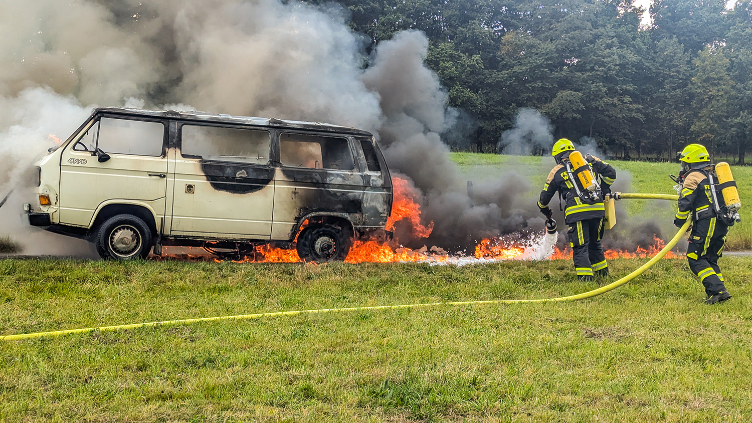 Ein in Flammen stehender VW-Bus hat am Freitagnachmittag (05.09.2025) die Feuerwehr auf den Plan gerufen.