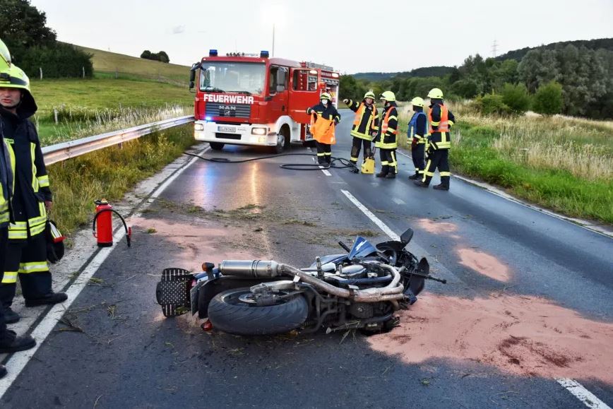 Ein schwerer Motorradunfall auf der L893 zog am Freitagabend (08.07.2022) eine Vollsperrung nach sich. Feuerwehr und Rettungsdienst wurden zur Einsatzstelle alarmiert.