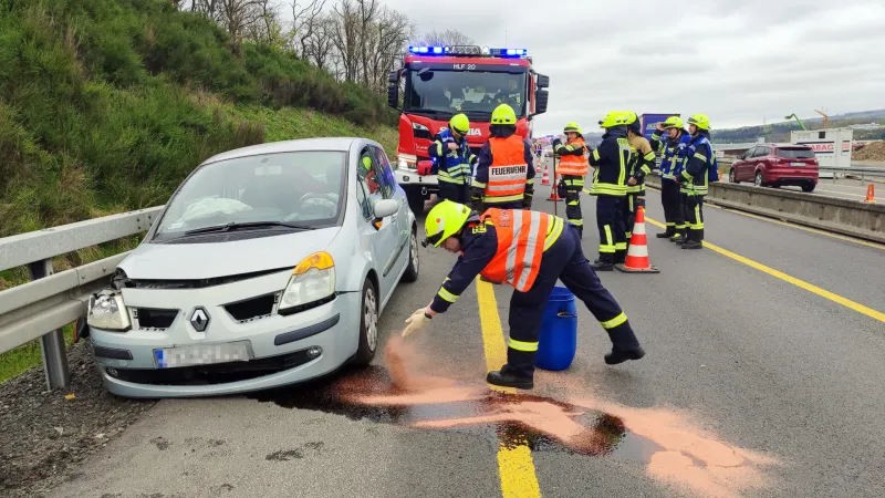 Die Feuerwehr sicherte die Unfallstelle und streute auslaufende Betriebsstoffe mit Bindemittel ab.
